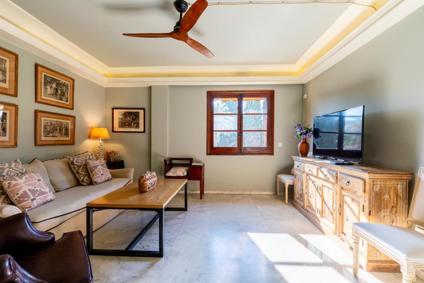 Located in the centre of Seville, 500 metres from Royal Alcázar of Seville, SF Apartamento con balcones con vistas al Hotel Alfonso XIII y a la Universidad provides air-conditioned accommodation with free WiFi and a flat-screen TV. This property is situated a short distance from attractions such as Plaza de España, Maria Luisa Park, and Santa MarÃa La Blanca Church. The property is non-smoking and is600 metres from La Giralda and Sevilla Cathedral.