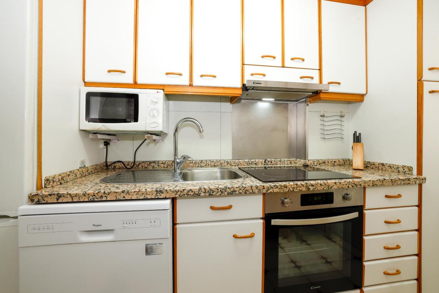 Four-Bedroom Apartment. This spacious apartment comes with a kitchen, a seating area, 4 separate bedrooms and 1 bathroom with a shower and a hairdryer. Guests can make meals in the kitchen that features a stovetop, a refrigerator, a dishwasher and kitchenware. The apartment features a washing machine, a coffee machine, a dining area, a wardrobe, as well as a flat-screen TV. The unit has 5 beds.